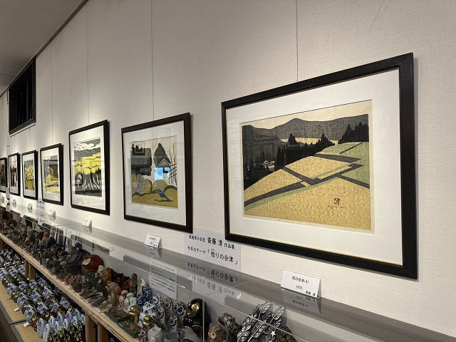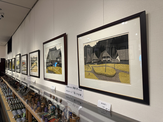 福島県河沼郡会津坂下町出身の木版画家。国内外において数多くの賞を受賞し、世界的にも評価が高く日本を代表する木版画家のひとりである。その作品は独特の簡潔かつ抽象的曲線により大胆に表現され、会津の冬シリーズに代表される故郷会津の風景をはじめ、文楽や風景などの日本文化を題材に数多くの作品を生み出した。その版画作品は世界中で愛され、国内外に多くのコレクターを有する。当ギャラリーでは現在所蔵している斎藤清作品の一部を常設展示しており、皆様に観覧無料にてご鑑賞いただけます。(一部販売もしております。お気軽にお問い合わせ下さい。) |